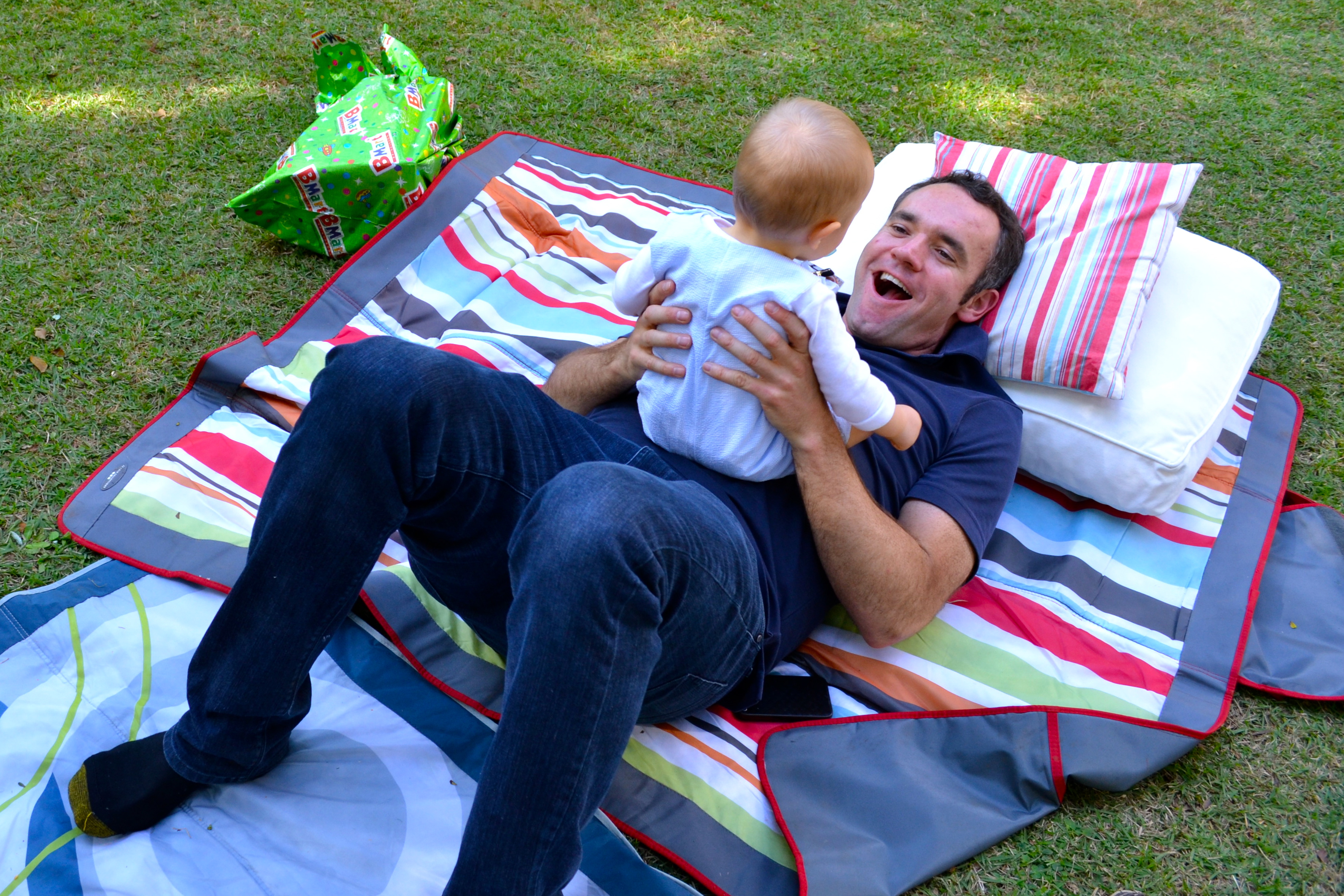 Playing in the grass.